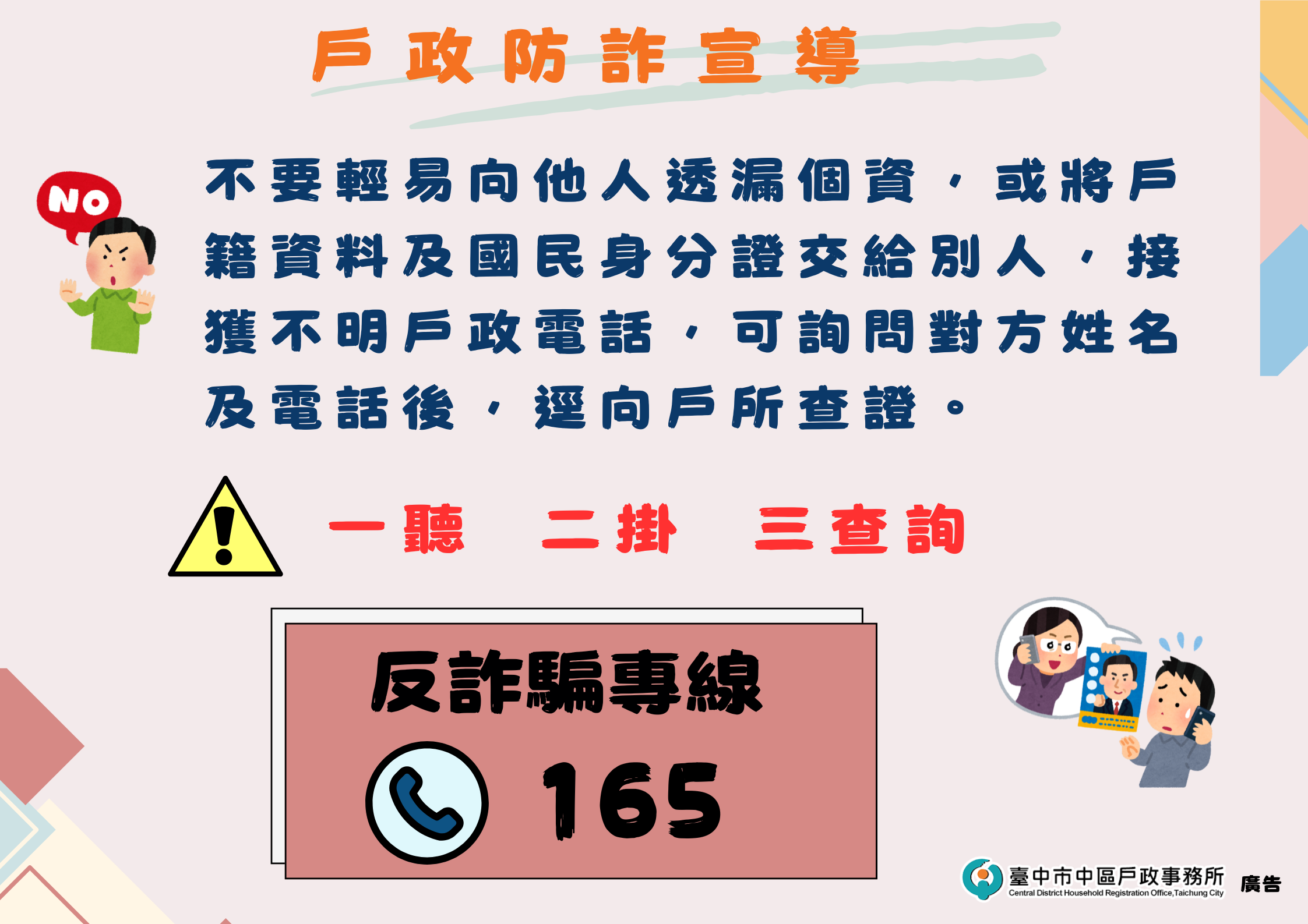 【小心詐騙】近來有詐騙集團冒用戶政事務所名義,騙取民眾個人資訊,請小心注意!